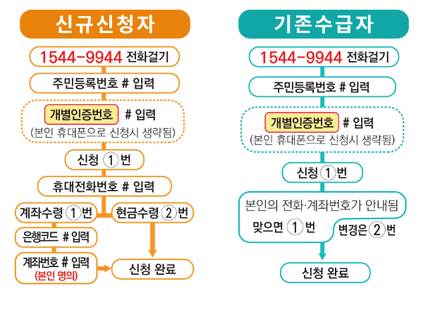 1544-9944로 전화하여 음성안내에 따라 신청