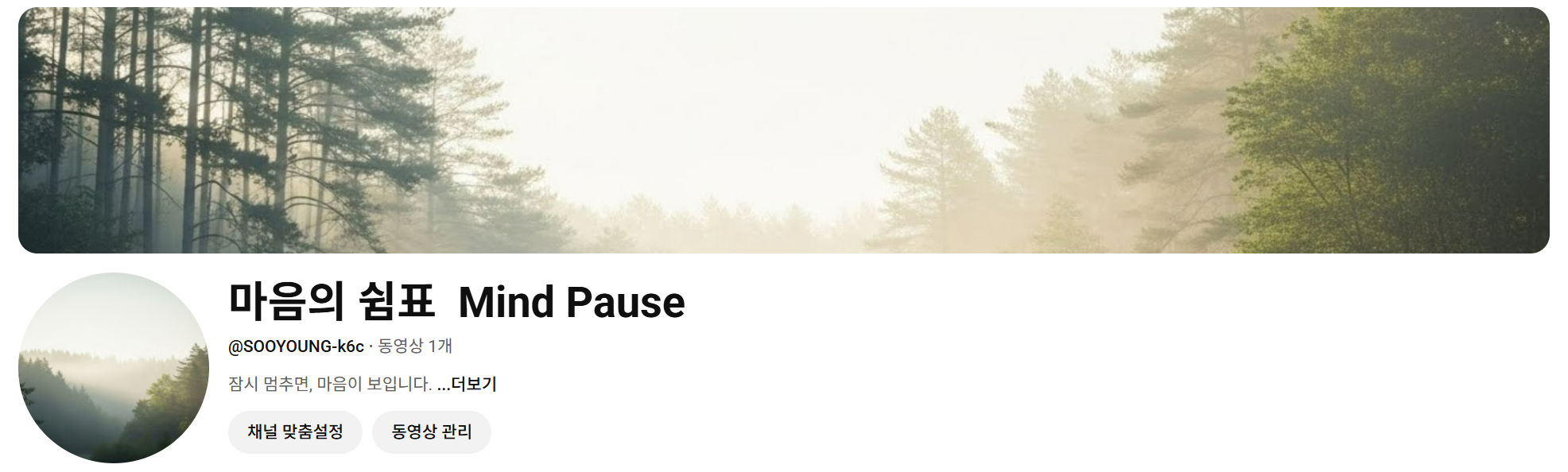 블로그를 시작하고 참 이런저런 시도를 많이 해보는 것 같습니다. 어제는 "마음의 쉼표 Mind Pause "라는 유튜브 채널을 만들었습니다. 많은 사람들이 쉽게 접할 수 있는 주제로 시작하였으나 또 많은 고민이 필요함을 느꼈습니다. 꾸준하게 이어가는 분들을 보면 참 존경스럽기도 하고... 포기하지 않고 계속 이어가기를 희망하며 하루를 시작해 봅니다.