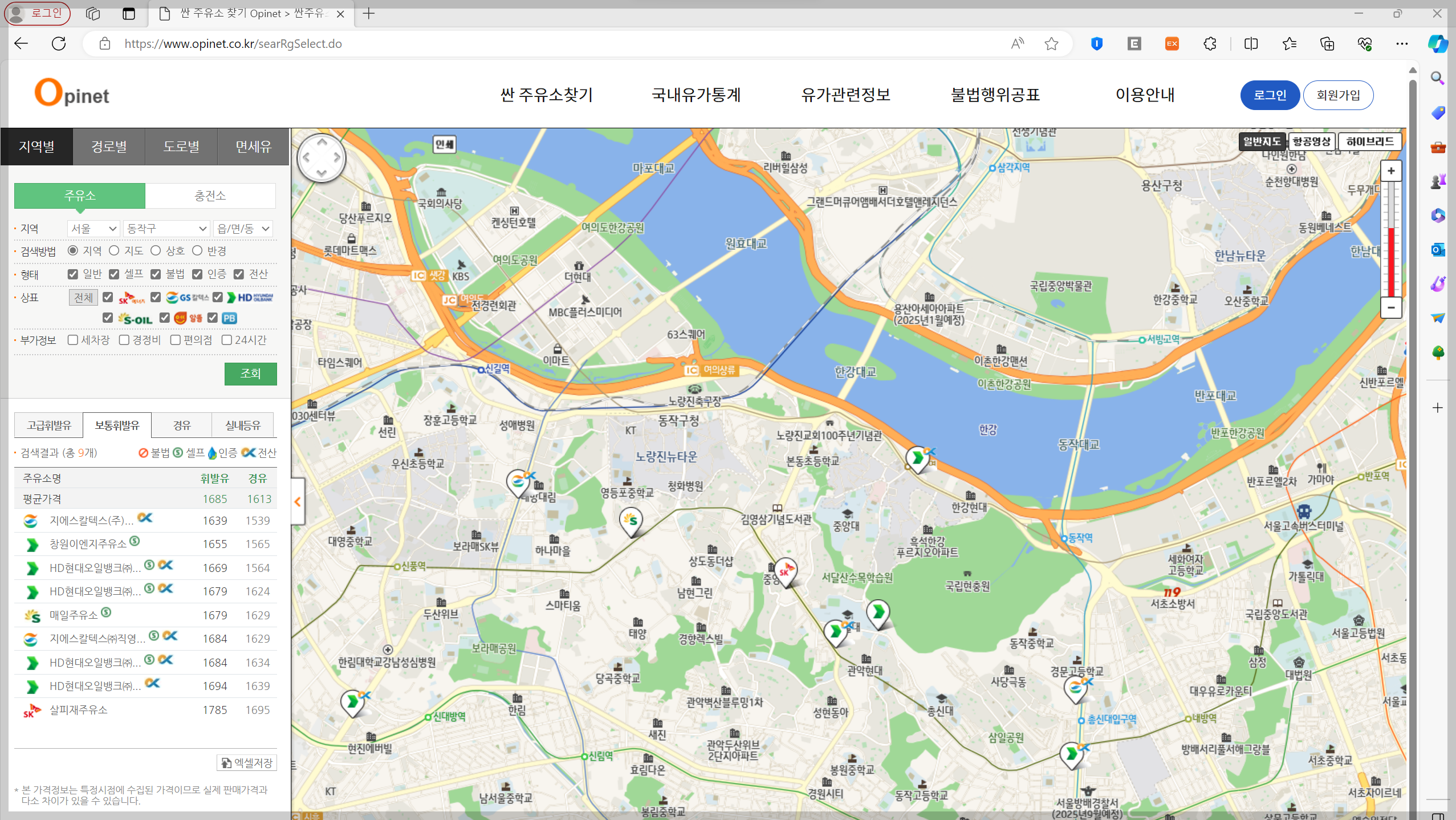 2. 오피넷 싼 주유소 찾기