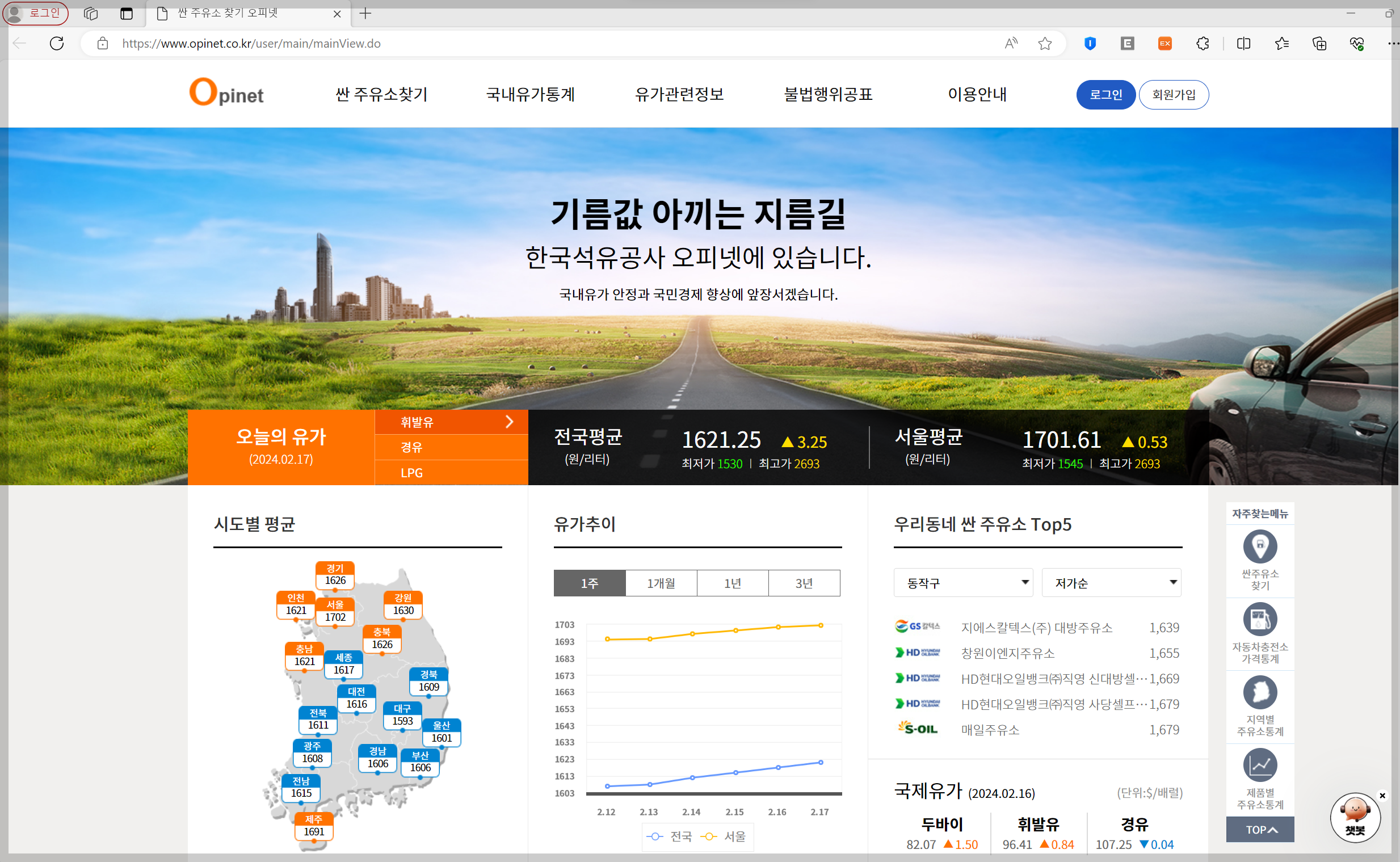 2. 오피넷 싼 주유소 찾기