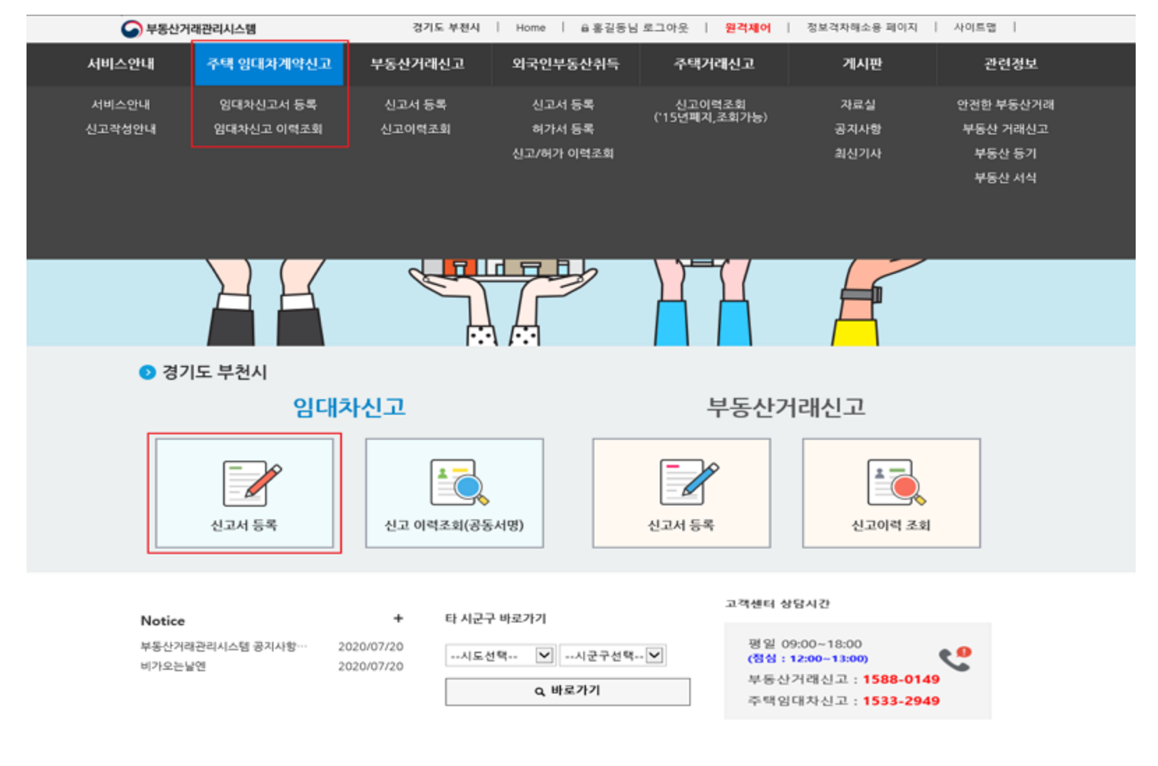 임대차계약 체결일로부터 30일 이내 행정복지센터 바운 또는 온라인 신고를 하시면 됩니다. 아래 화면을 통해 온라인 신고를 알아보도록 하겠습니다.