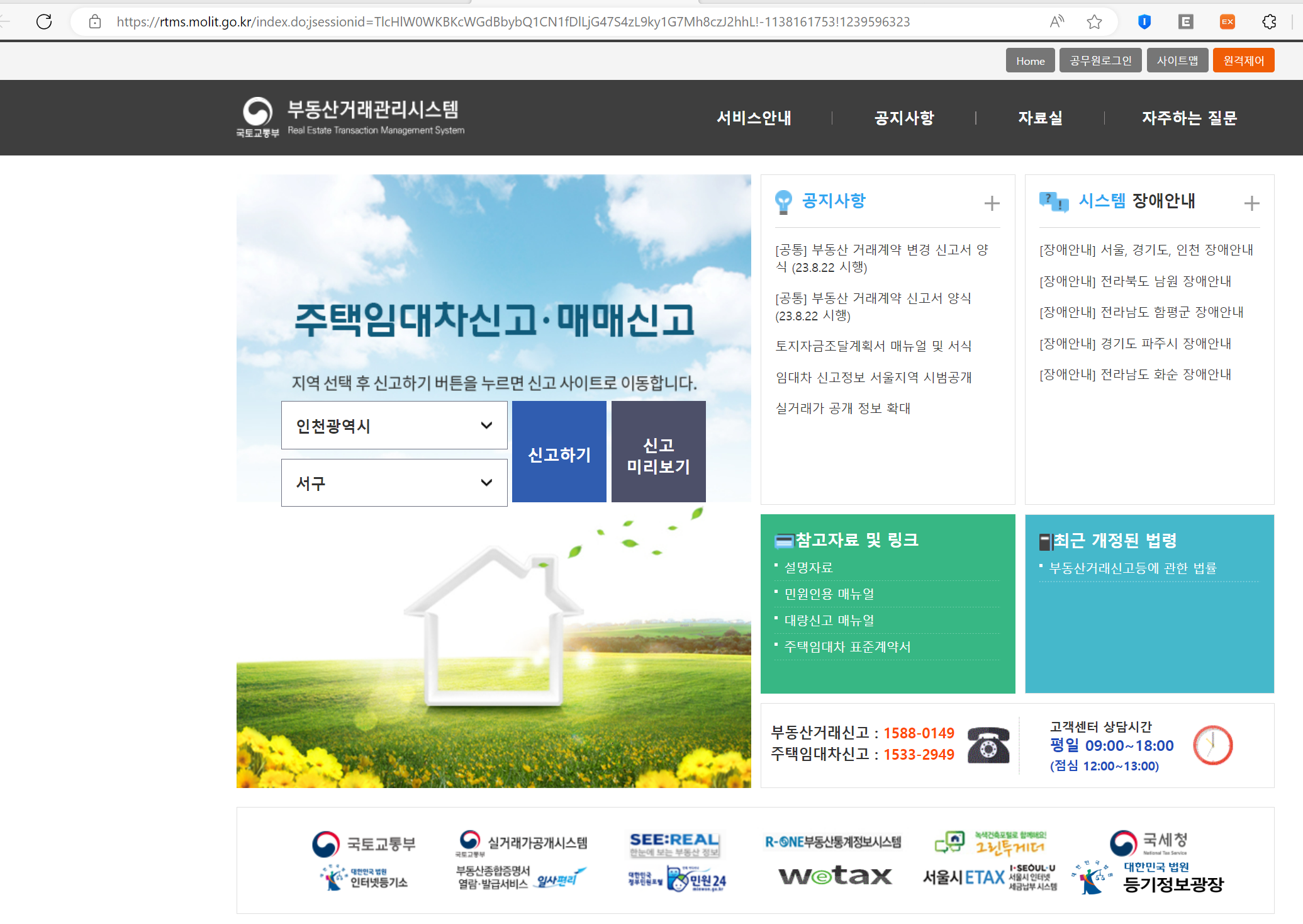1) 접속 ( http://rtms.molit.go.kr) : 인터넷 포털사이트에서 검색어 " 임대차신고", " 주택임대차 신고제", "확정일자"를 입력하면 부동산거래관리시스템이 검색됩니다.
