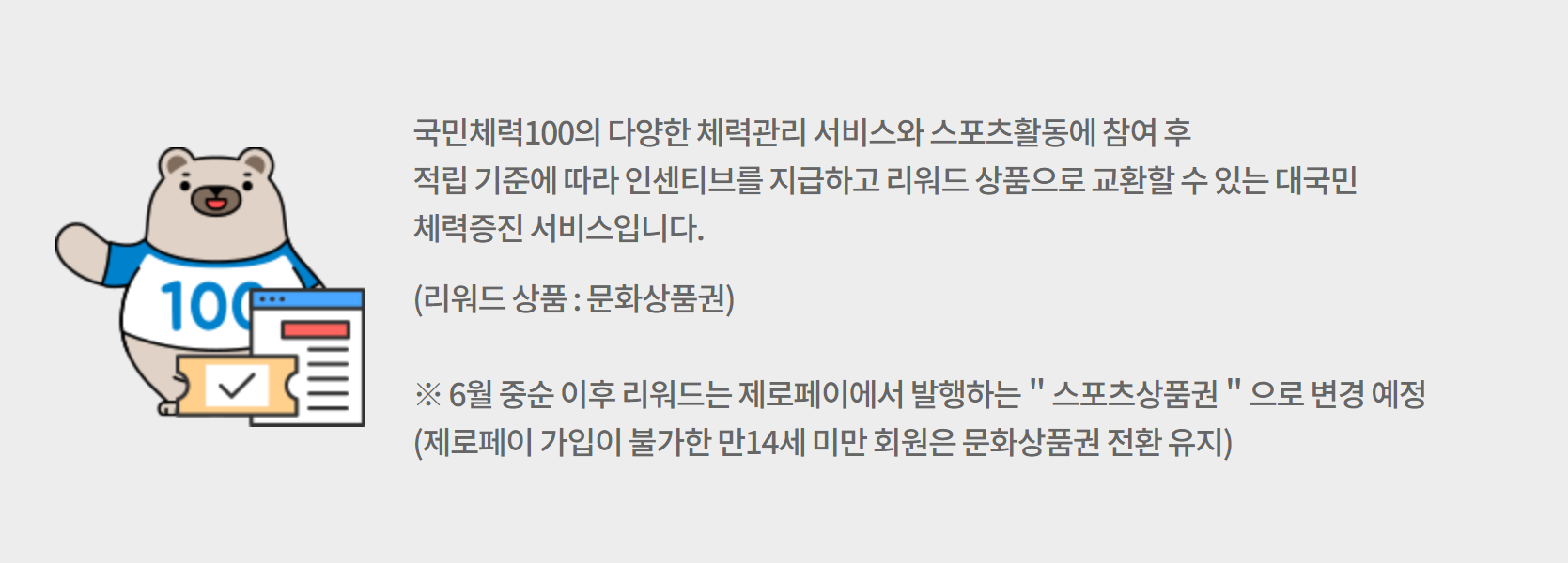 | 신청방법 | 국민체력 100 홈페이지에서 신청 |
