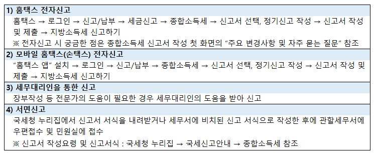 ARS전화 (☎ 1544-9944)등으로 신고하시면 종합소득세와 개인지방소득세를 환급받을 수 있습니다.