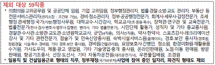 [2] 아래 예시 목록에 해당되지 않는 직종(한국고용직업분류(2018) 세분류 직업명 중 391개 직종)