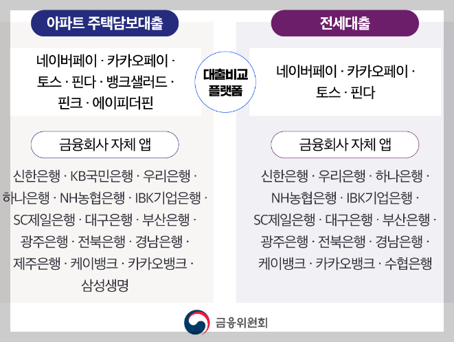 비대면으로 대출을 갈아탈 수 있도록 한 '대환대출 인프라'대상에 아파트 주택담보대출(주담대)과 전세대출도 포함된다고 합니다. 금융위원회와 금융감독원은 아파트 주택담보대출은 1월 9일부터, 전세대출은 31일부터 대환대출 인프라에서 갈아탈 수 있게 된다고 발표하였습니다.