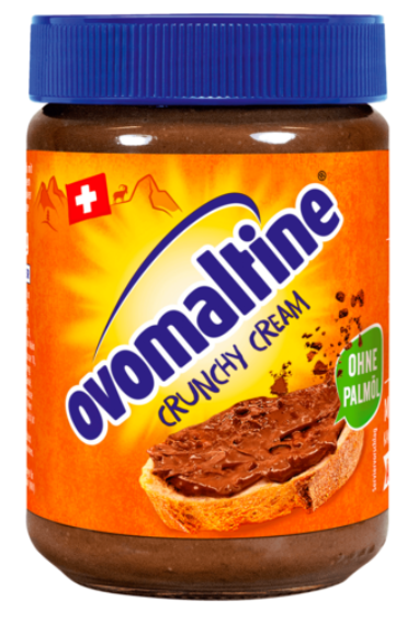 Ovomaltine 초코 스프레드는 스위스에서 시작된 Ovomaltine 브랜드의 제품으로, 오버몰틴이라는 보리와 코코아가 혼합된 원료로 만들어진 초콜릿 스프레드입니다. 일반적으로 빵이나 크래커에 발라 먹거나, 팬케이크, 와플 등 다양한 디저트에 활용됩니다.